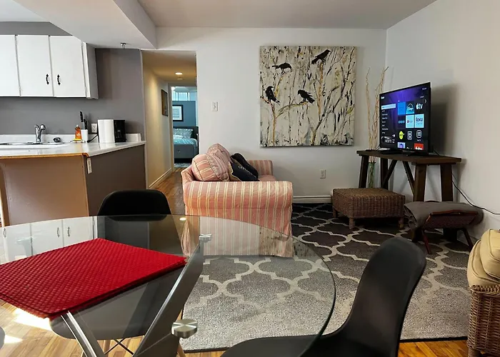 A fully furnished kitchen is also available with an oven and a dishwasher. Inglis Heritage Cozy 2-Bdrm Near Waterfront, Unit 4 apartment is just around the corner from the nearest bus station - Maritime Halifax.
